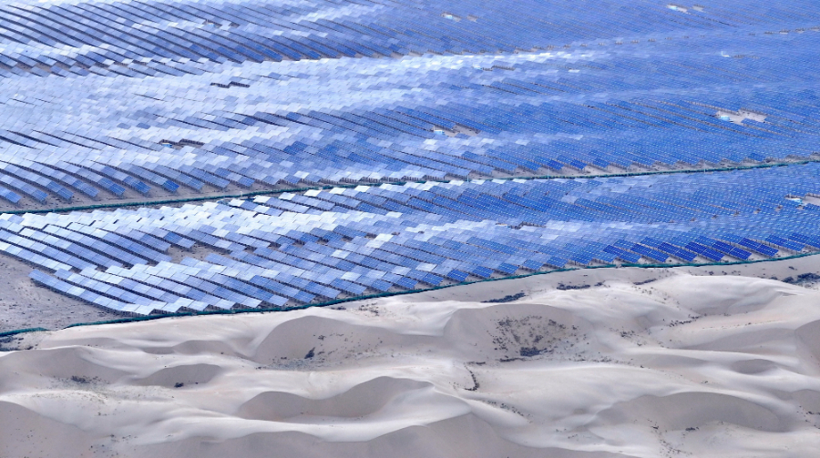 ▲这是内蒙古鄂尔多斯市达拉特旗一处装机100万千瓦的光伏基地(无人机照片)。新华社发 杨耀中 摄