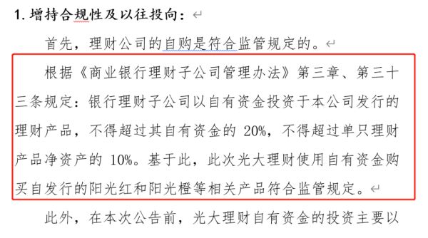 值得关注的是,银行理财自购旗下产品符合监管规定并且有明确的上限。